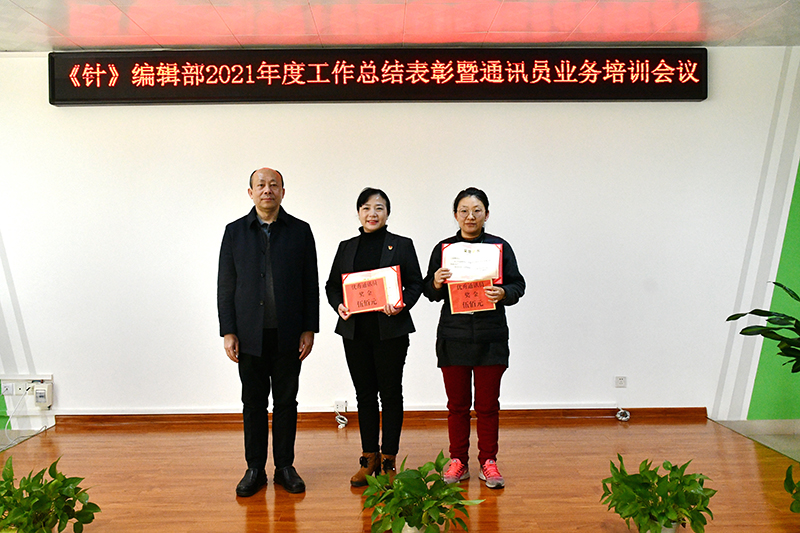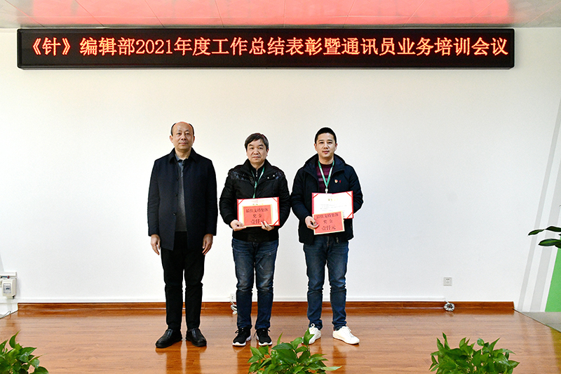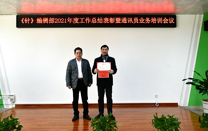 會上,黨工部部長、《針》執(zhí)行總編俞鵑作了2021年編輯部工作總結(jié),通報了2021年各單位及通訊員稿件完成情況,同時部署了2022年《針》稿件采集方向和要求。按照通訊員考核辦法,經(jīng)編輯部評選并上報公司同意,王愛赟、韋志慧、王暉等3人獲評2021年優(yōu)秀通訊員,楊彩蓮、葉年荷、林美、魏云等4人獲評2021年達(dá)標(biāo)通訊員,市場部、億康公司等2個單位獲評最佳支持集體獎,方堃獲評最佳支持個人獎。林鉆煌、覃永強分別為獲獎的個人和集體頒發(fā)了獎金和證書。