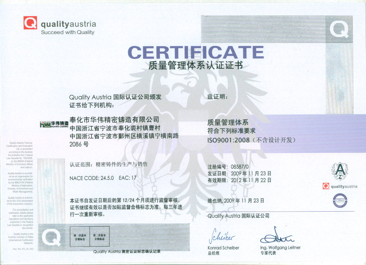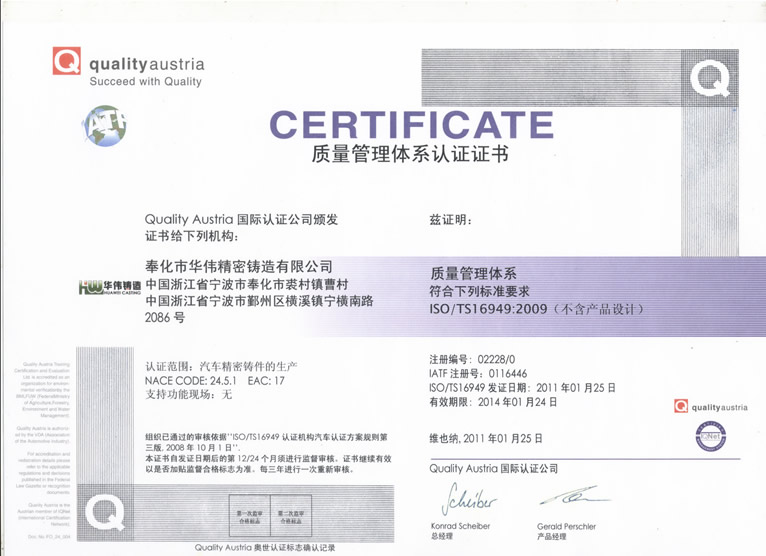 企業(yè)全面推行ISO 9001:2008 和 TS16949:2009質(zhì)量管理體系,過程的監(jiān)視和測量始終貫徹產(chǎn)品的整個生產(chǎn)的過程,糾正